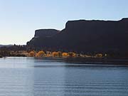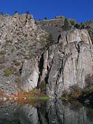 autumn sun created mirror-like reflections on many of the small backwater pools . We followed