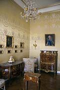 plated in gold and silver, fancy ceramic dinnerware, huge rooms and small rooms