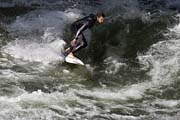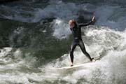 One surfer at a time rides the wave. Since it's a standing wave, the