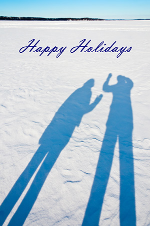 You might recall from a previous post that I often make my own stamps for our annual Christmas, Hanukkah, Eid, and Other Relevant Holidays Card. Since the holidays are now past I thought I’d reveal this year’s design to those of you who are not on my very exclusive holiday card mailing list and, therefore, were not lucky enough to receive one of your own. After giving it a lot of thought, I came up with the design shown below.